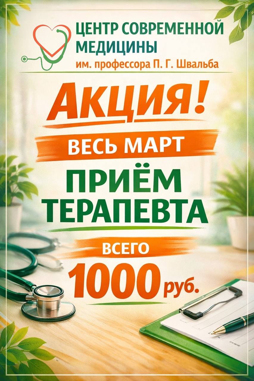 Друзья, встречаем весну с приятной новостью! Весь март первичный приём врача-терапевта в нашем центре — всего 1000 рублей вместо обычной стоимости.