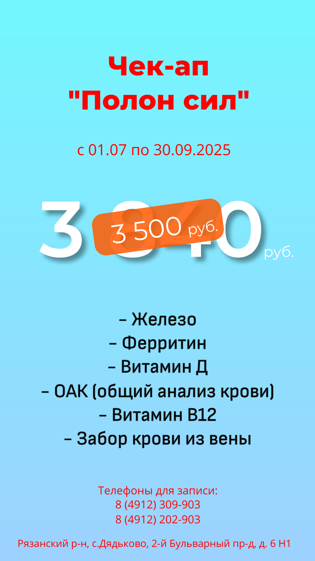 Чек-ап «Полон сил» — по специальной цене 3500₽ вместо 3840₽!